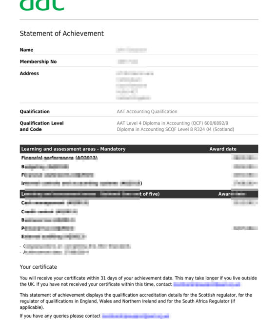 AAT Level 4 Diploma transcriptin Professional Accounting the highest AAT qualification