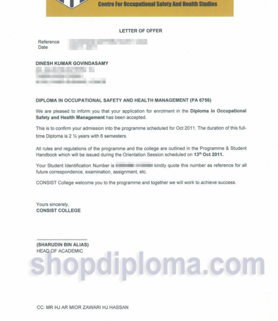 The Diploma in Occupational Safety and Health Management is a flagship 2-year full-time (or part-time equivalent) qualification, equivalent to 120 ECTS credits, designed for aspiring Safety and Health Officers (SHOs) and supervisors in high-risk workplaces. This MQA-accredited diploma equips students with comprehensive skills in hazard identification, risk assessment, safety auditing, and compliance with Department of Occupational Safety and Health (DOSH) regulations. Core modules cover occupational health, safety legislation, ergonomics, fire safety, emergency response, and environmental management, blending theoretical learning with practical simulations, site inspections, and case studies. Experiential components include mandatory internships with firms like Gamuda or Petronas, ensuring industry-ready competencies. Graduates meet DOSH requirements for SHO registration, qualifying for roles in construction, manufacturing, or oil & gas, with 90% employability within six months.