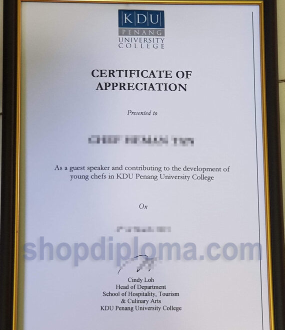 KDU University college certificate of appreciation
