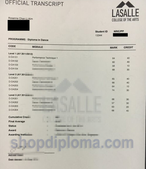 Lasalle college of the arts Official Transcript fake diploma buy Lasalle college transcript