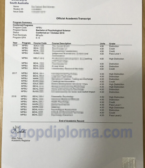 University of South Australia Official Academic Transcript